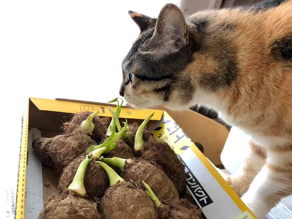 驚いた! 世田谷の農家さんから、子ども食堂にと頂いた里芋。 全部使いきったと思ってたら、箱に残ってた。生命の強さに感動です。
