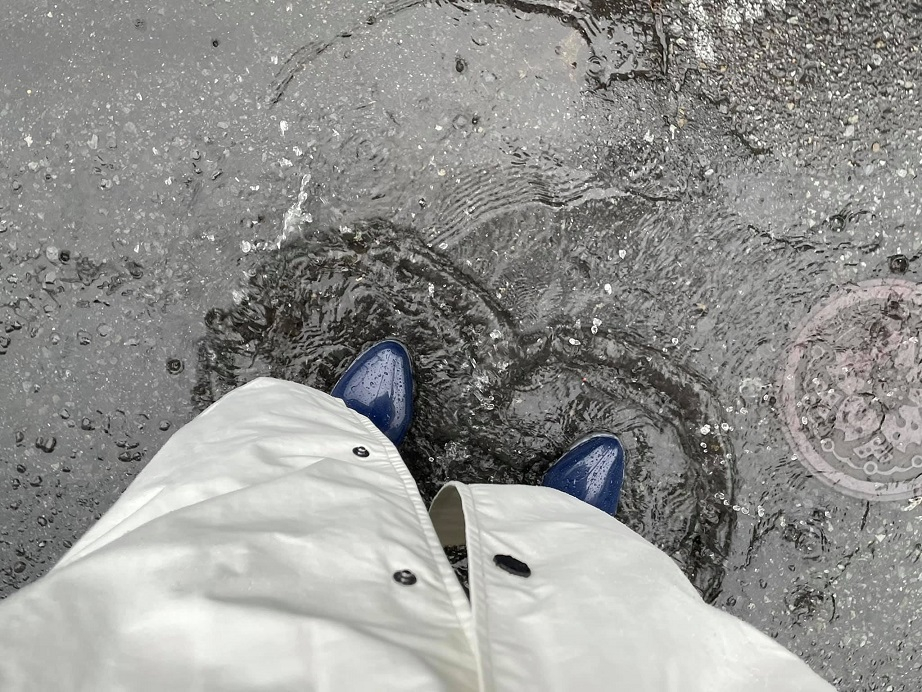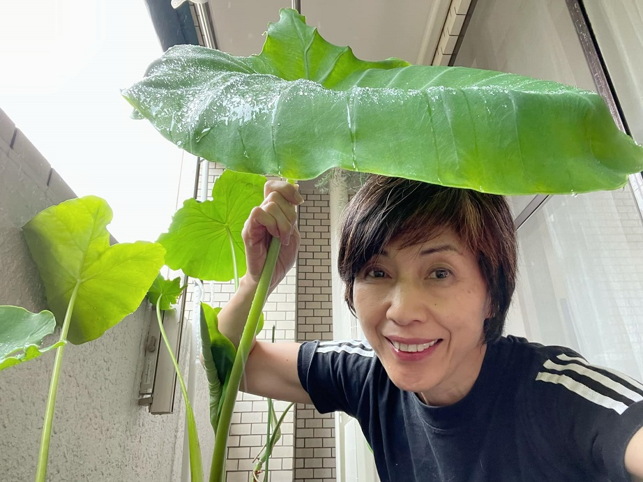こんな日は、ベランダの里芋の葉っぱが役立つかも。