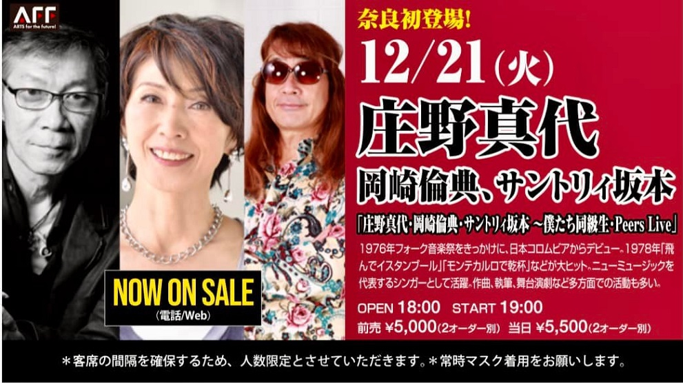 今日21日は、奈良のビバリーヒルズで、岡崎倫典さんとサントリィ坂本さんと一緒に「僕たち同級生LIVE」!