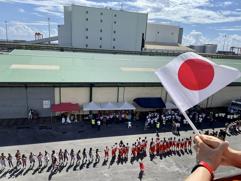 港では、地元の方が歌やダンスでお出迎え