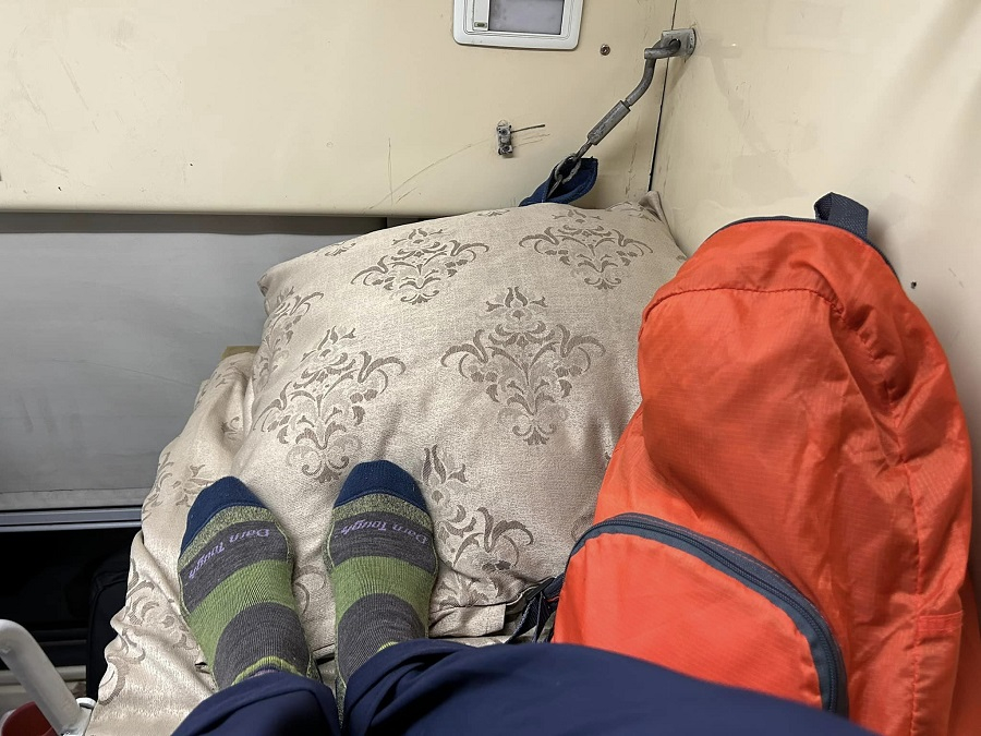 結局、車掌さんがきて、私には上段が与えられた。4人部屋にはすでにお婆さんと息子らしい2人が寝ていた。