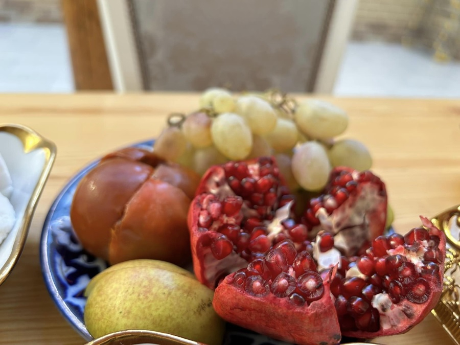 果物も毎日4-5種類あります。ザクロは毎日部屋に持ち帰り、一粒ずつ、味わっていただきました。