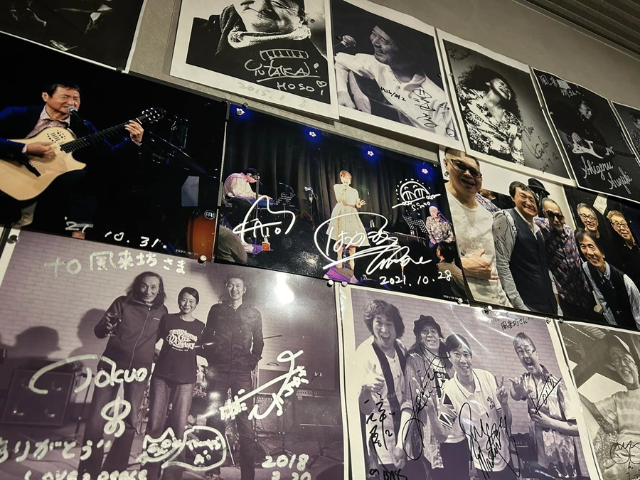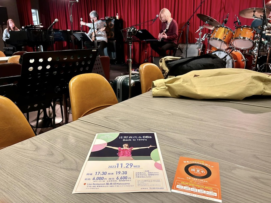 今日は松山。OB’sオリジナル(おジジなる)メンバーでライブ。 風来坊移転GRAND OPEN SPECIAL 5 Days の初日をやらせていただきます。 店内に移転前のお店で出演した時の写真があったよ。嬉しいね。