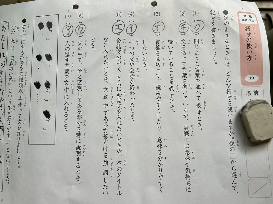 7才の子も、宿題プリントで、ちゃんと句読点を教わってたよ。