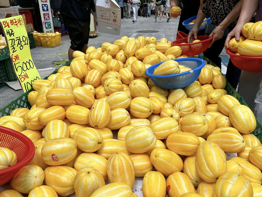 カゴに山盛りの黄色いマクワウリを抱えた人が、そう言いながら歩いてた。