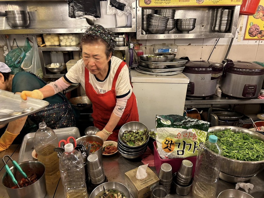 まるでドラマーのように手と体を動かし、秒速で料理を仕上げていくスーパーおばちゃん。