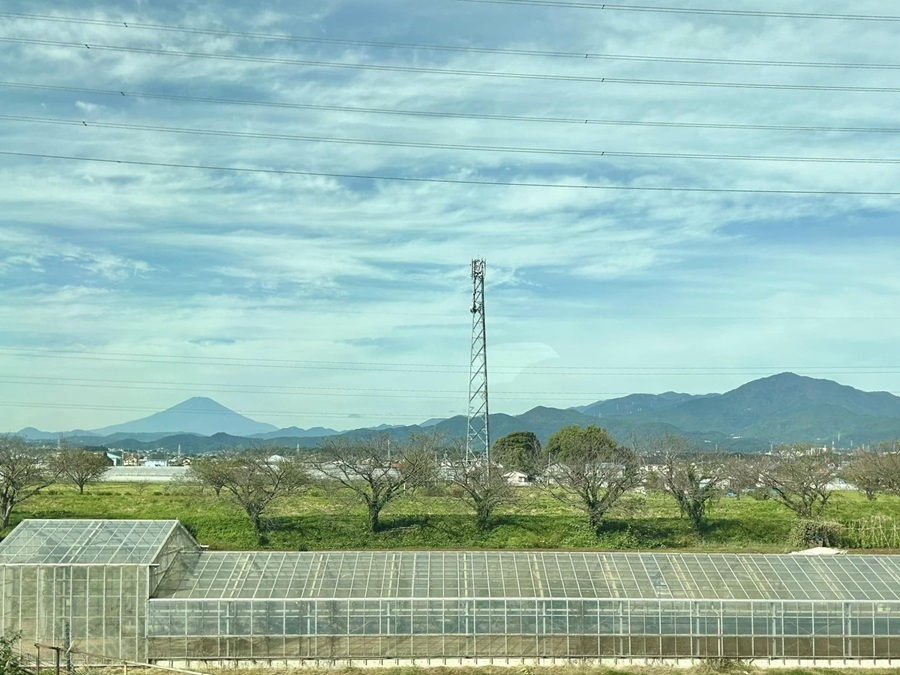 新幹線が品川駅をでてすぐ、富士山が遠くに小さく見えた。