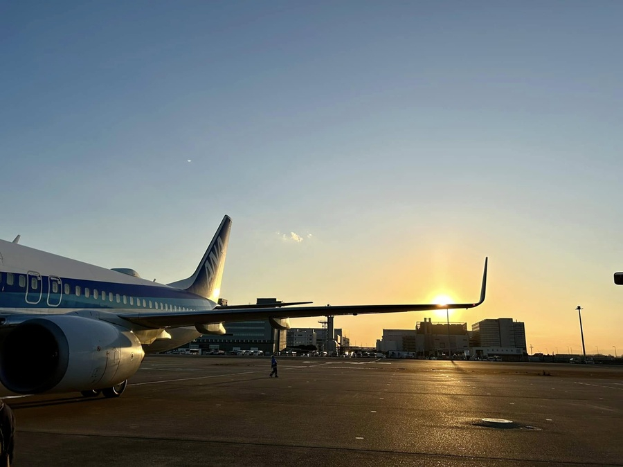 飛行機に乗り込む前、きれいな夕陽に大きな溜め息が。