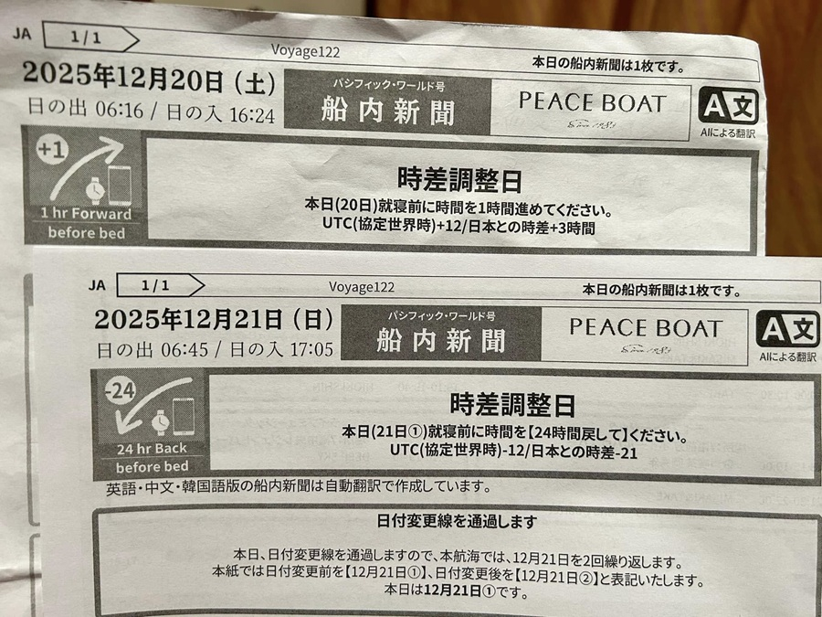その案内が船内新聞に書かれているんだけど、調整日の前夜に知らされるからややこしい。