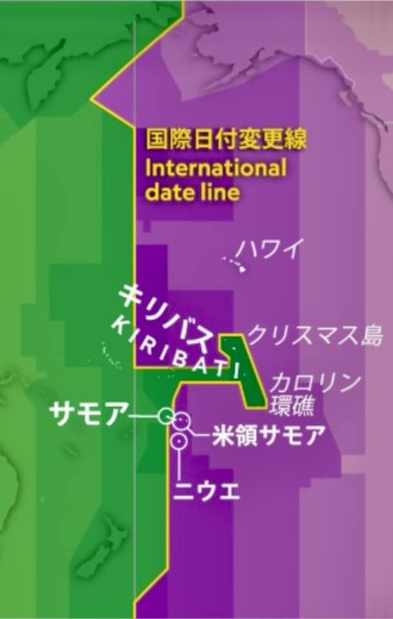 船がキリバスを通過したら、また大晦日に戻り、翌日もう一度「初日の出」を迎えることになる。