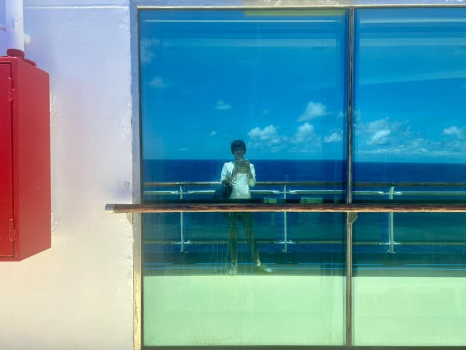 船長の今日のアナウンスでは、昼間の外気温28°C、海水温29°Cだって。