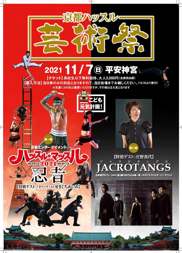 京都平安大使実行委員会は、新型コロナウイルスの猛威により、人類至上稀な苦境に立たされている今、京都から日本・世界にきぼうを届けるため「世界の安寧を願い、今心をひとつに」を合言葉に『ハッスル芸術祭』を11月7日(日)に平安神宮にて開催いたします。